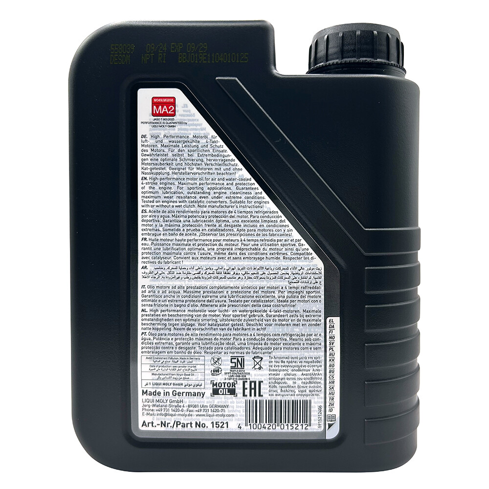 LIQUI MOLY Motorbike 4T Street 10W-40 採用德國合成技術配方,專為四行程機車引擎設計,通過 API SP 與 JASO MA2 認證,確保離合器抓合力穩定。能有效降低摩擦與磨損,提供優異的高溫保護與清潔性能,延長引擎壽命。適用各類配備濕式離合器的摩托車,滿足日常通勤與長途騎乘需求。