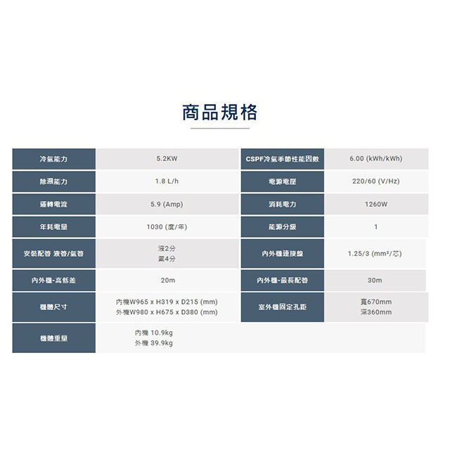 ❁機體重量:內機 13.4kg / 外機 44.7kg