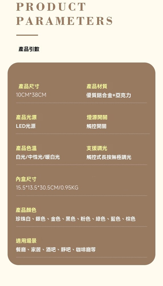 支持調光:觸摸式長按無極調光
