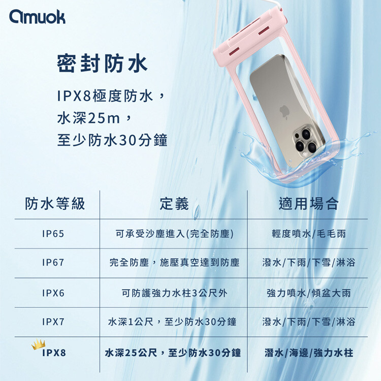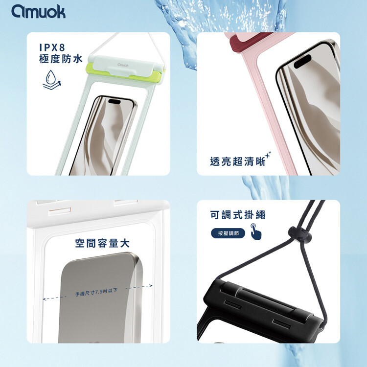 amuok FUN心玩氣密防水手機袋 IPX8防水 7.5吋以下手機通用-2個一組