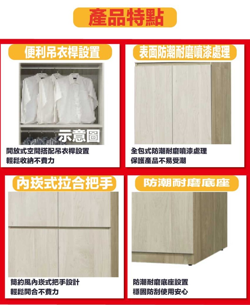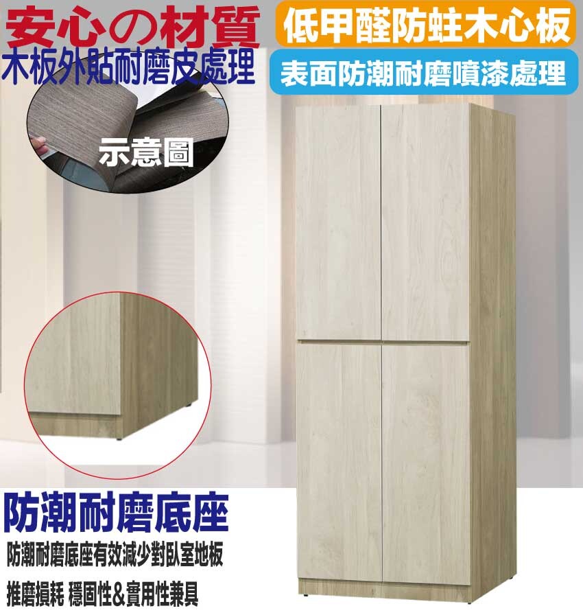 【綠家居】瑞歐雙色2.5尺四門雙吊衣櫃 木紋雙色系+安心材質製造,使用放心+搭配居家更便利,採用防蛀木心板+防潮耐磨底座+防夾手緩衝門片五金等安心材質製造 ,外層採用防潮耐磨噴漆處理搭配開門櫃+吊衣桿+內開放層格等收納空間設計,全由專人配送到家,專業安心服務,替你省下更多時間!