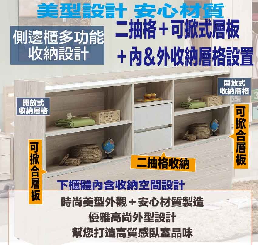 搭配可掀式層板+二抽屜+內&外收納層格等收納空間設計