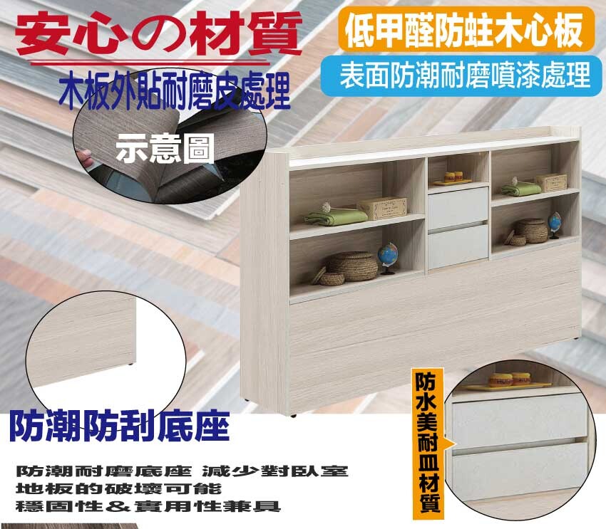 採用防蛀木心板+防潮耐磨底座等安心材質製造