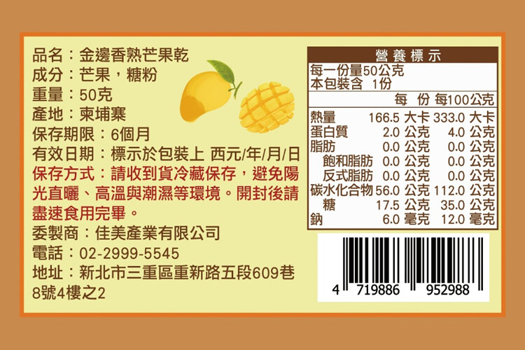 過敏原訊息: 本產品含有芒果及其製品,不適合對其過敏體質者食用