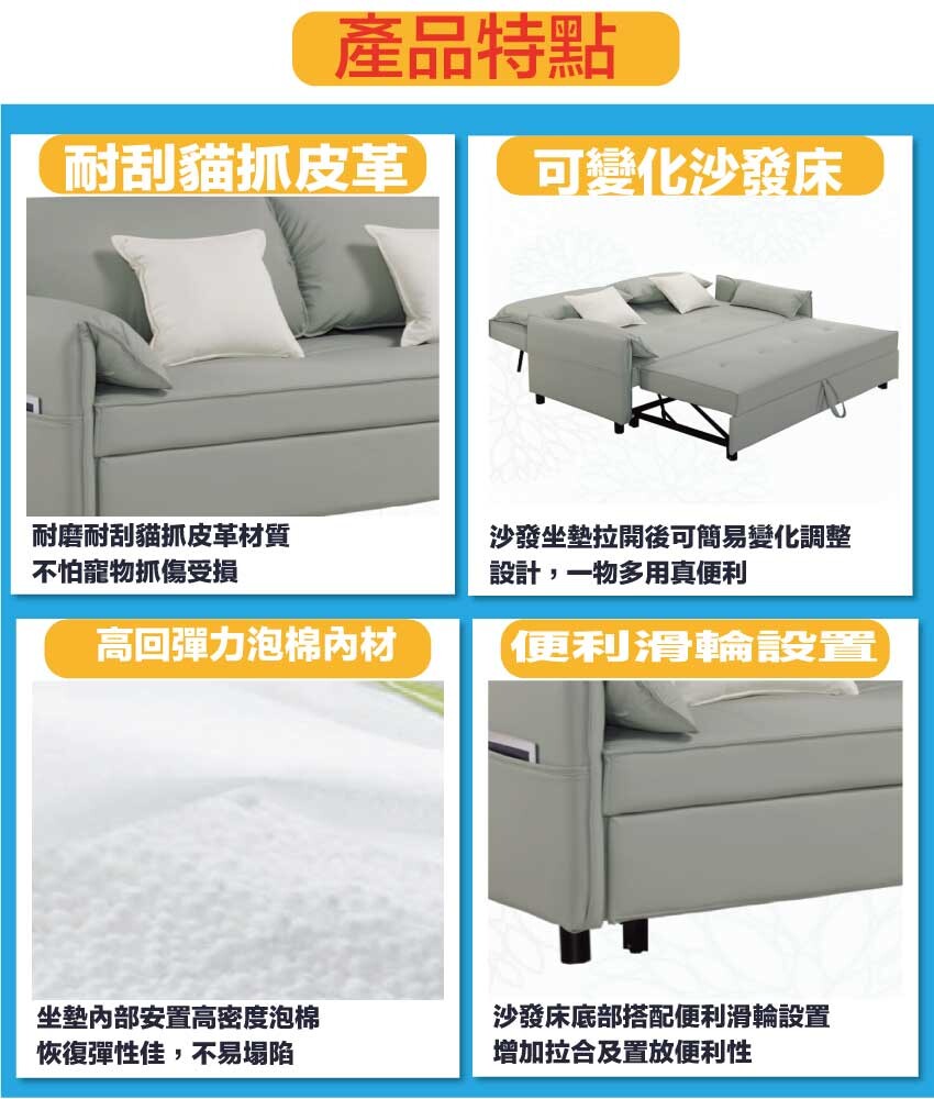 【綠家居】費爾貓抓皮革前拉式沙發椅/沙發床 淺灰色系+現代美型外觀+安心材質設計,就是這種頂級質感的設計,能輕鬆地融入各種空間風格,採用防鏽鋼管結構&不鏽鋼五金結構+便利滑輪設置+高回彈力加厚泡棉+耐磨貓抓皮革等安心材質,品質安心有保障,現在購買專人送到府服務,免組裝+免運費,讓你省時省力省運費!
