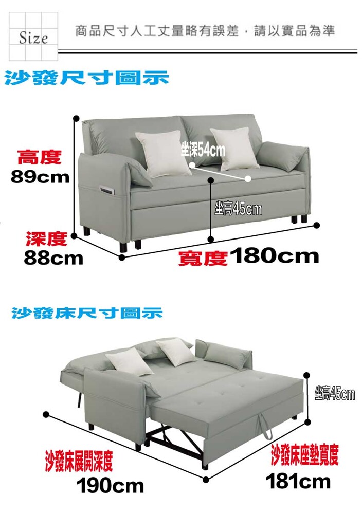 沙發將坐墊往前拉開後即可即可變化為沙發床使用,搭配滑輪底座讓您更變化使用.實用機能性設計打造居家便利性
