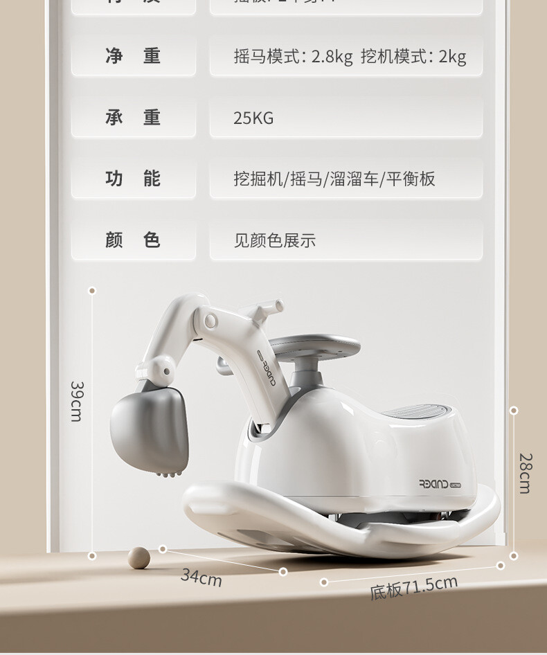 特點:壹車多用/既是扭扭車也是挖掘機