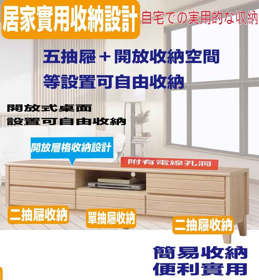 搭配採用五抽屜+開放層格等收納空間設計