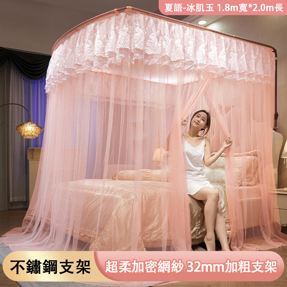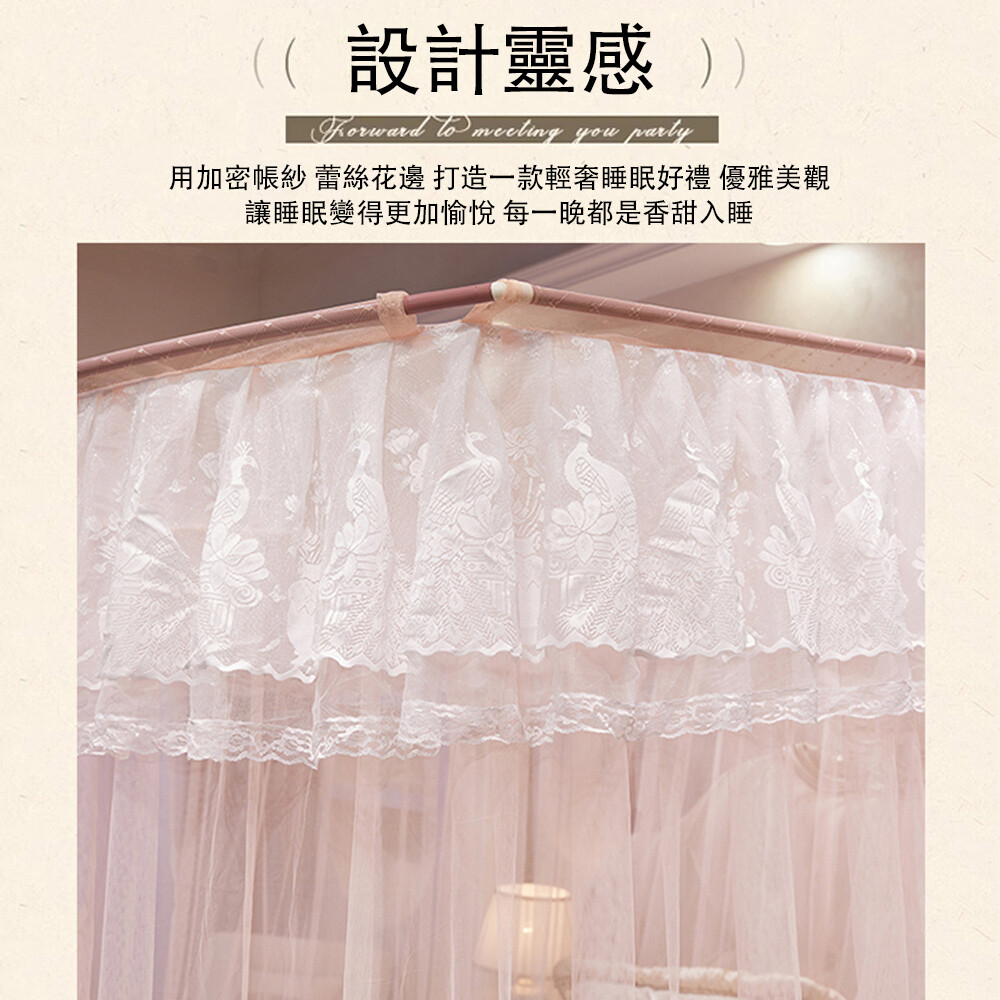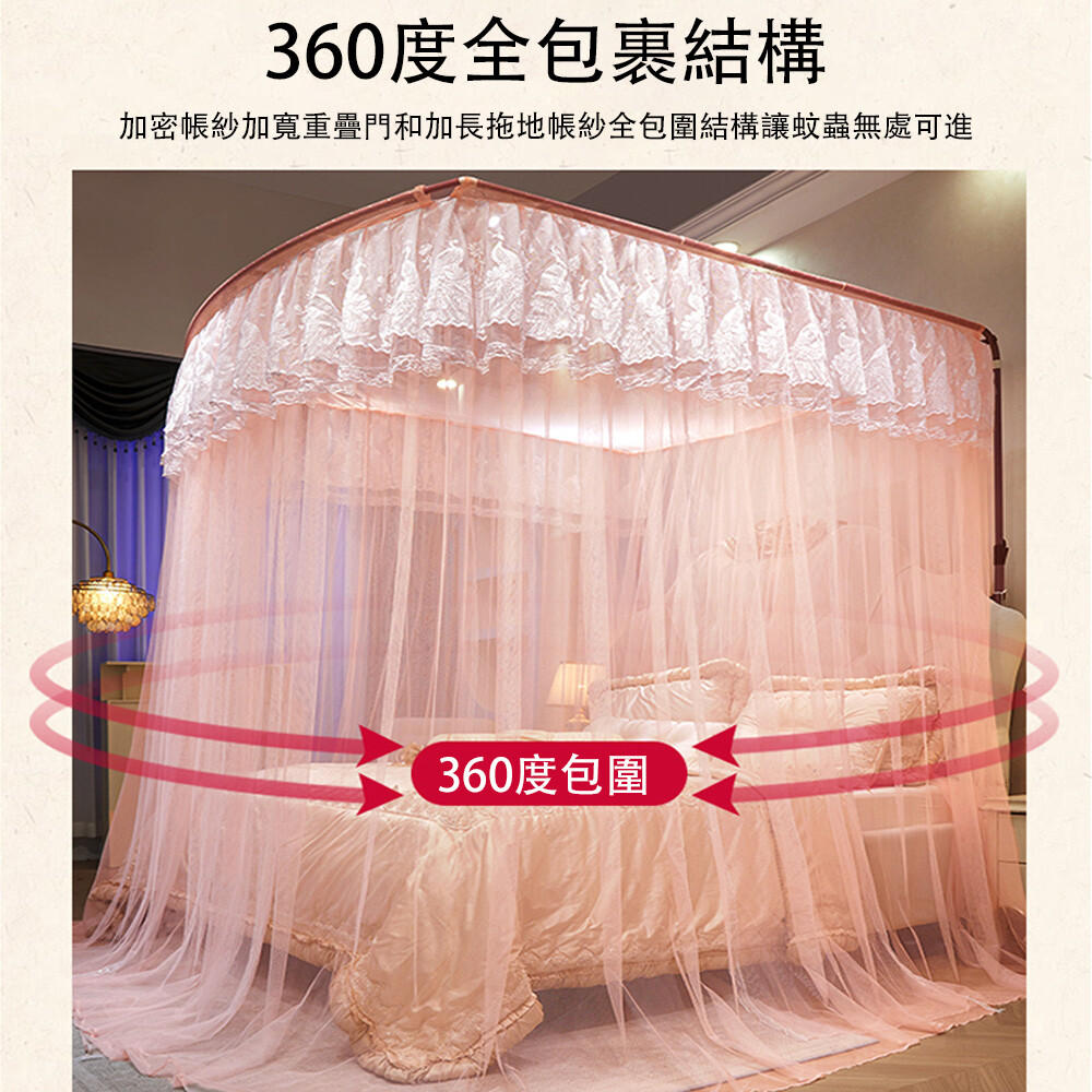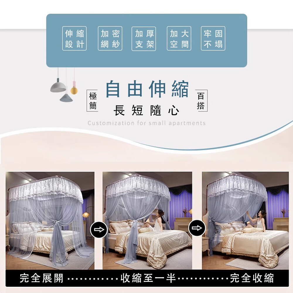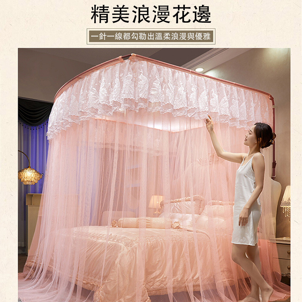1:U型蚊帳床尾沒有支架,所以立柱必須安裝在床頭後面,且立柱