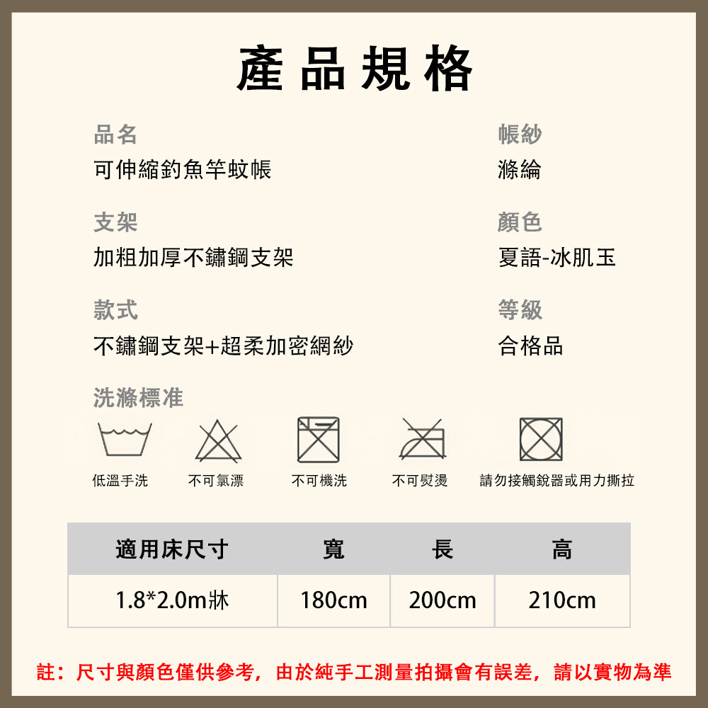 3:因面料批次不同、手工剪裁及測量設備影響,蚊帳及支架可能存