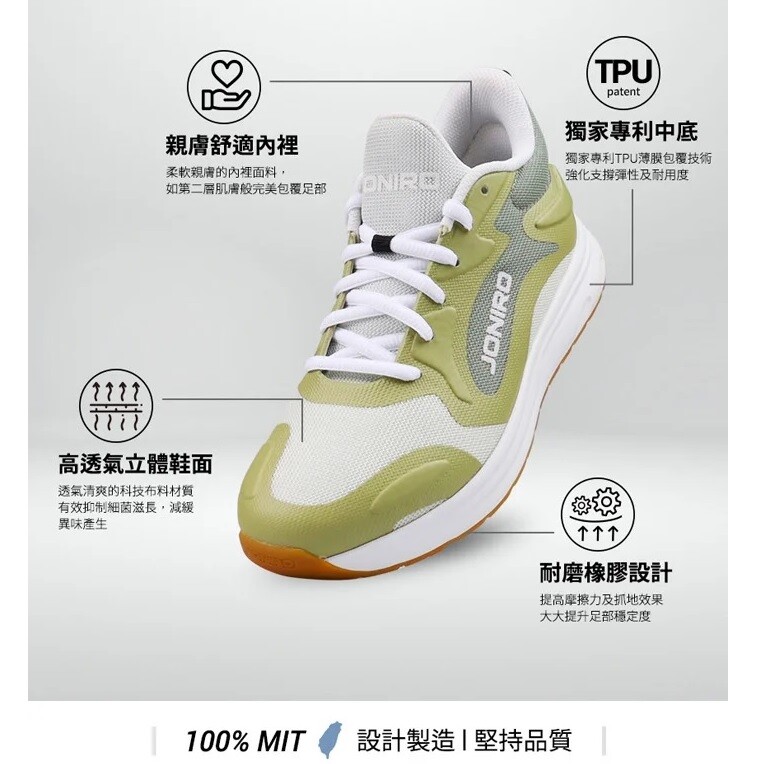 – 鞋底:獨家專利設計 PU中底外層包覆TPU薄膜