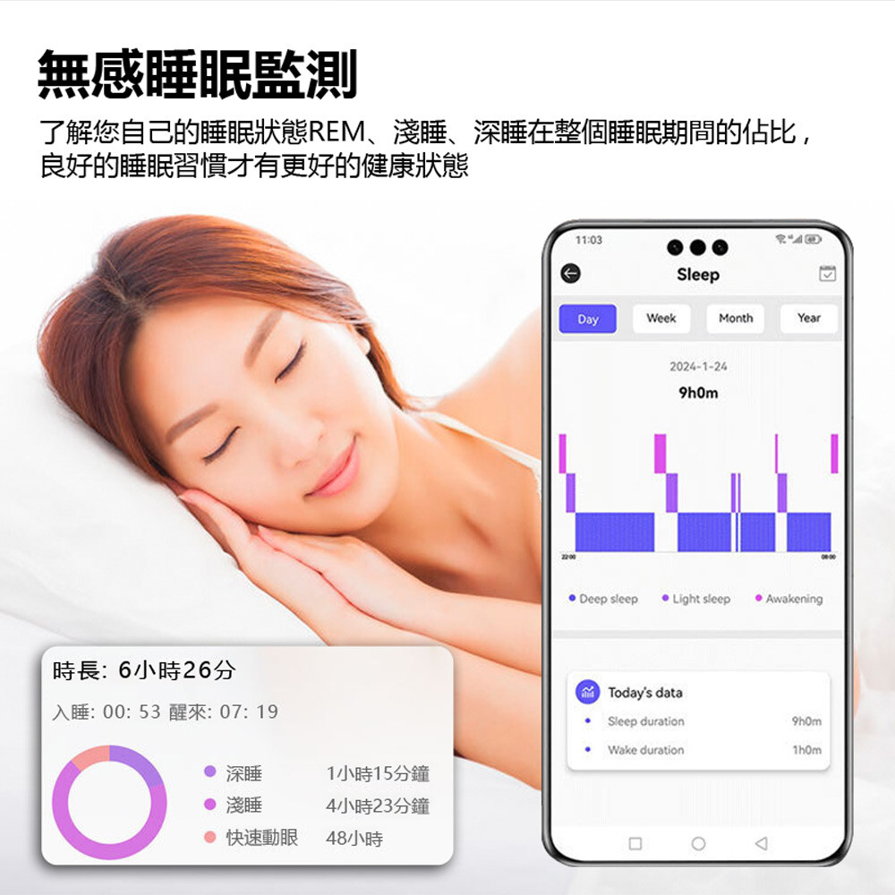 ★ 24小時心率監測,睡眠監測,能夠及時提前自查身體狀況