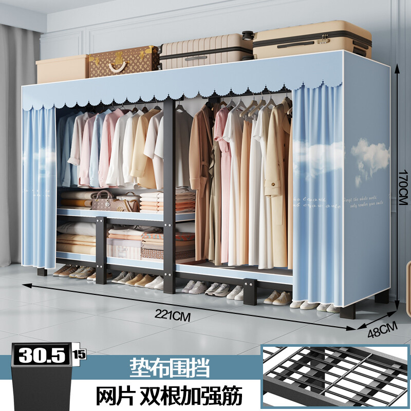 品牌其他顏色藍色、綠色、米白色、棕色產地中國特點可折疊、分格、多層置物架材質金屬類型置物架、衣櫃、衣帽架款式對開門適用場所臥室、客廳層數2層組裝方式自行組裝保固保固種類: 供應商保固 保固期限: 90天尺寸長度: 221cm 寬度: 48cm 高度: 170cm