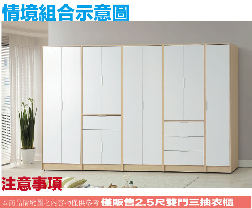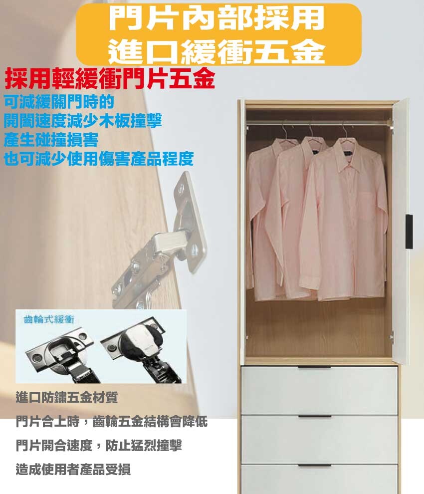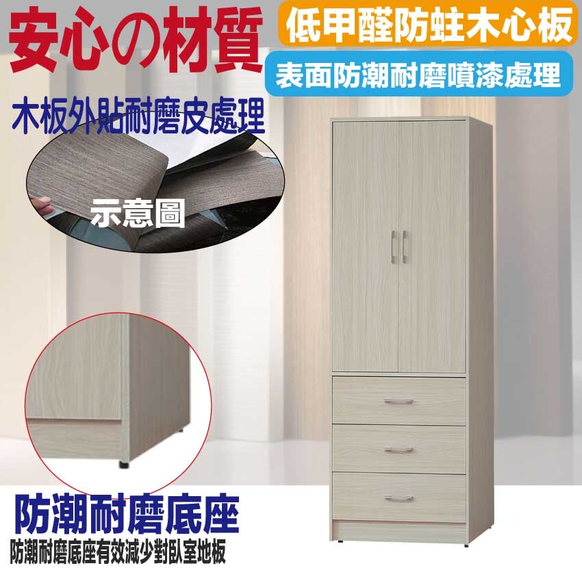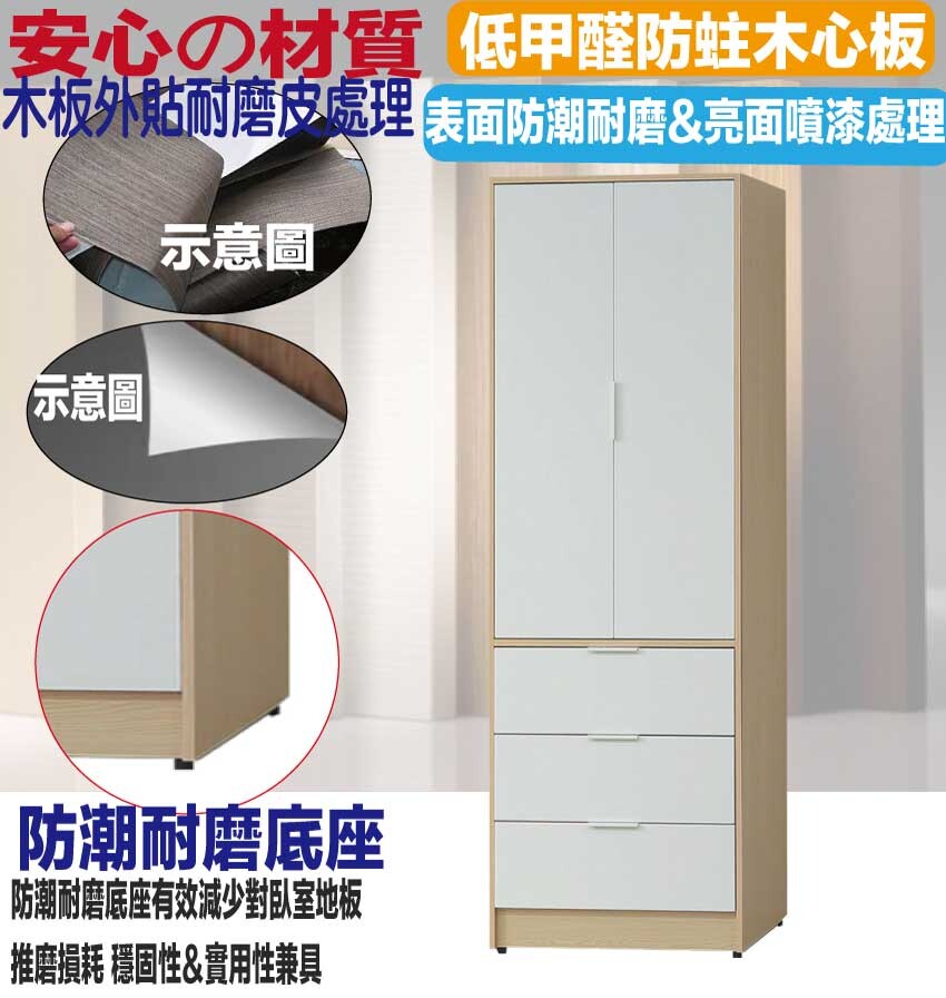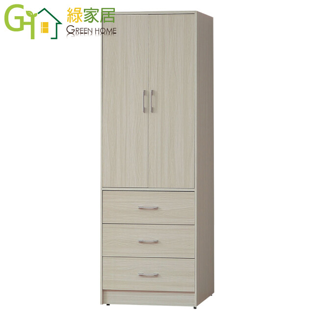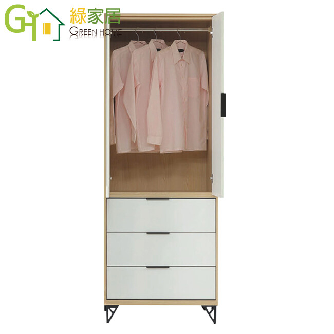 【綠家居】普伊斯2.5尺二門三抽衣櫃(二色可選) 二色可選+安心材質製造,使用放心+搭配居家更便利,採用防蛀木心板+防潮耐磨底座+防夾手緩衝門片五金+五金滑軌結構等安心材質製造 ,外層採用防潮耐磨噴漆處理搭配採用開門櫃+吊衣桿+三抽屜+內開放層格等收納空間設計,全由專人配送到家,專業安心服務,替你省下更多時間!