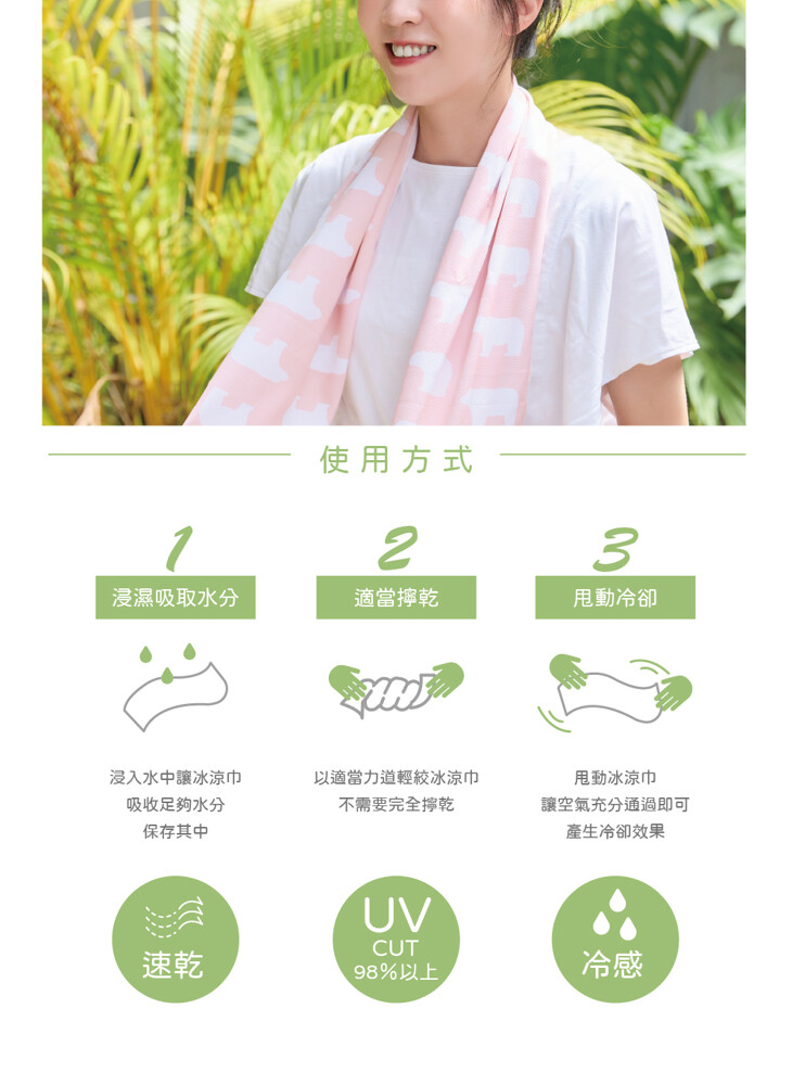 ■只需沾濕、擰乾、抖開即可,帶來清涼感受