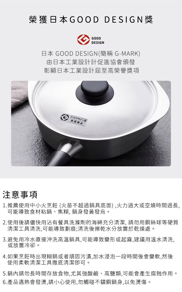 材質:304不鏽鋼、鍋柄/酚醛樹脂