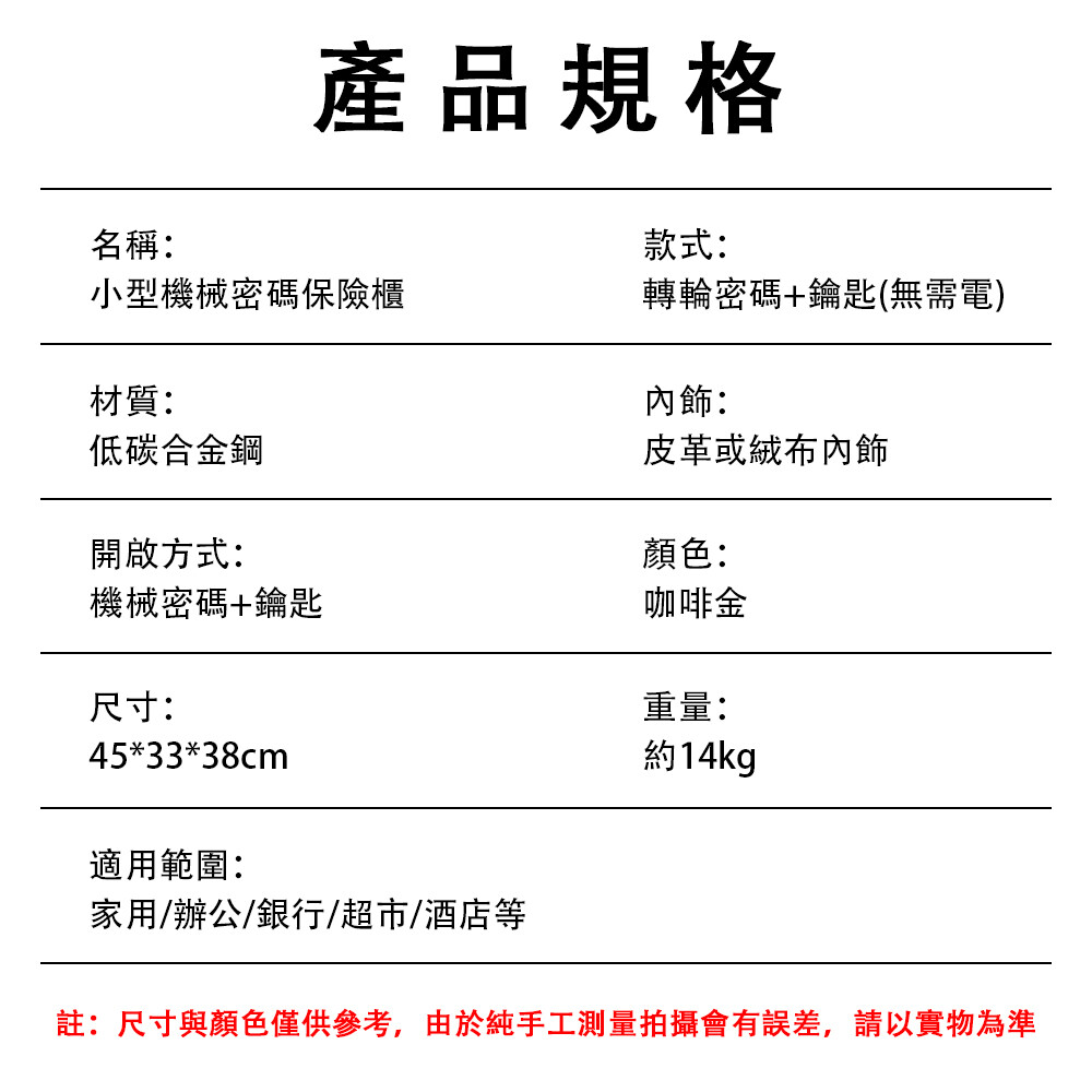 土豪金45高(轉輪密碼+鑰匙)無需電