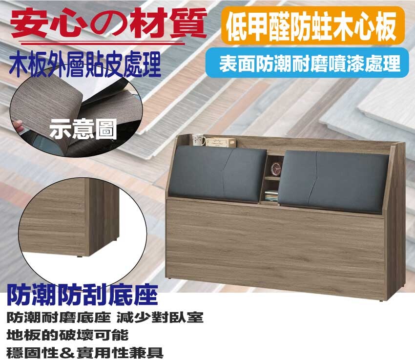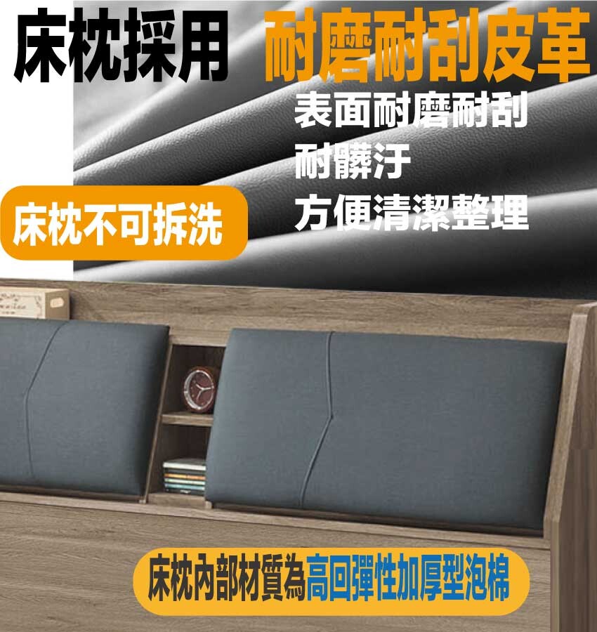 【綠家居】格斯灰橡6尺雙人加大耐磨皮革床頭箱 灰橡木紋色系+安心材質製造,使用放心+搭配居家更便利,採用防蛀木心板+防潮耐磨底座+耐磨耐刮皮革+高回彈泡棉等安心材質製造 ,外層採用防潮耐磨噴漆處理搭配床頭採用可掀式床枕板+內&外收納空間等收納空間設計,全由專人配送到家,專業安心服務,替你省下更多時間!