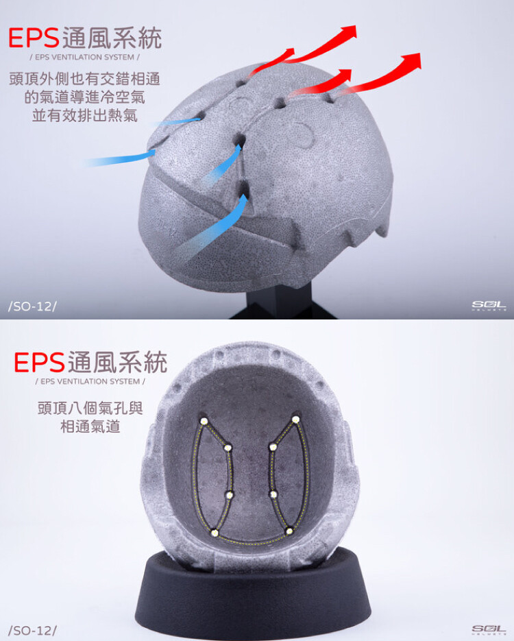 D.E.V.S. 雙重排氣系統,分別為前額進氣及後方負壓排氣,提升通風效率。