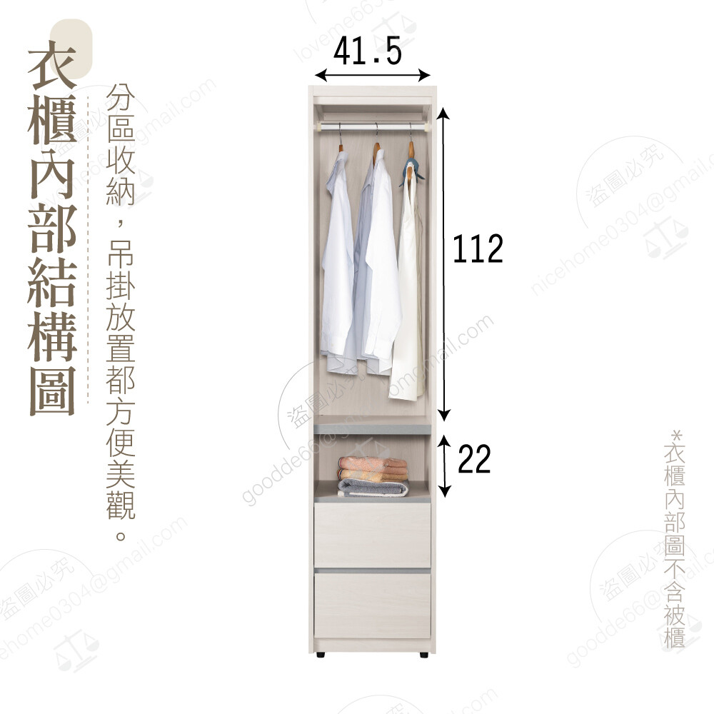 《奈斯家具Nice》327-02-HP 希斯洛1.5尺被櫥式衣櫥/二抽