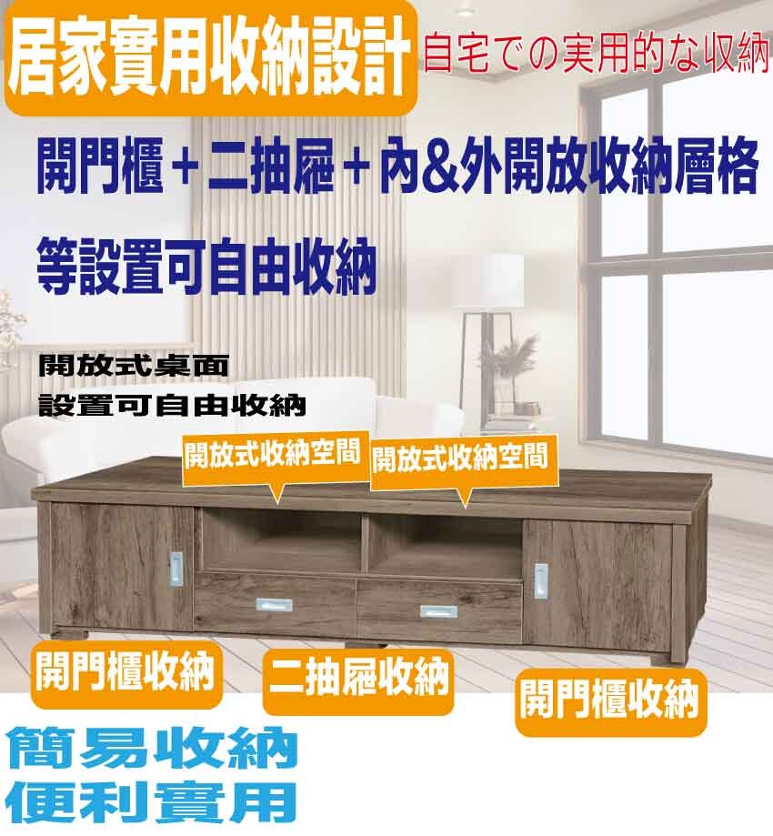 搭配採用開門櫃+二抽屜+開放式層格等收納空間設計