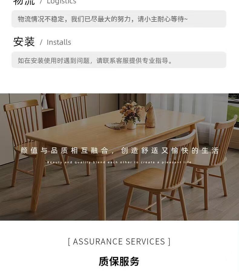 北歐實木餐桌 現代家用 長方形 吃飯桌子 日式餐桌椅組合 小戶型簡約 P