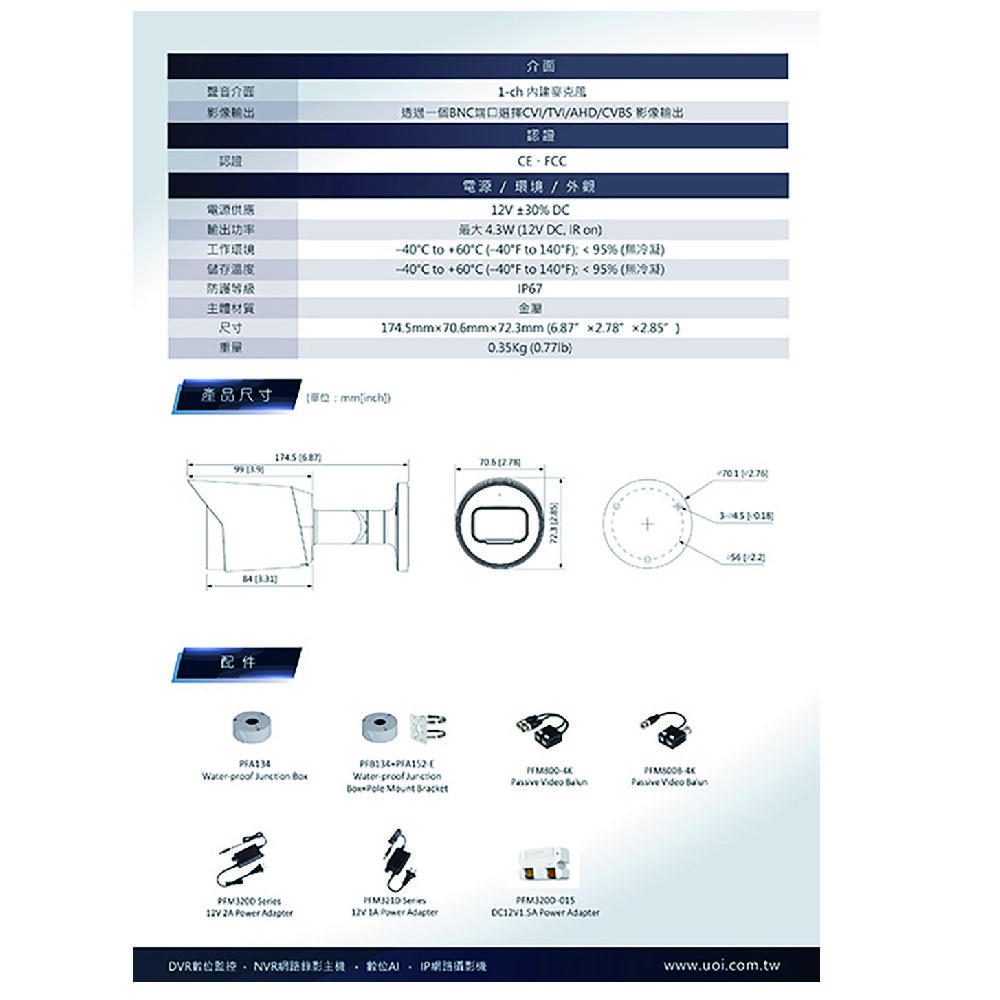 > CVI/CVBS/AHD/TVI 可切換。