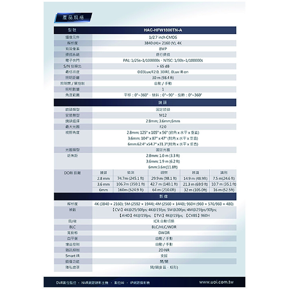 > 3.6 公釐定焦鏡頭(2.8 公釐可選)。