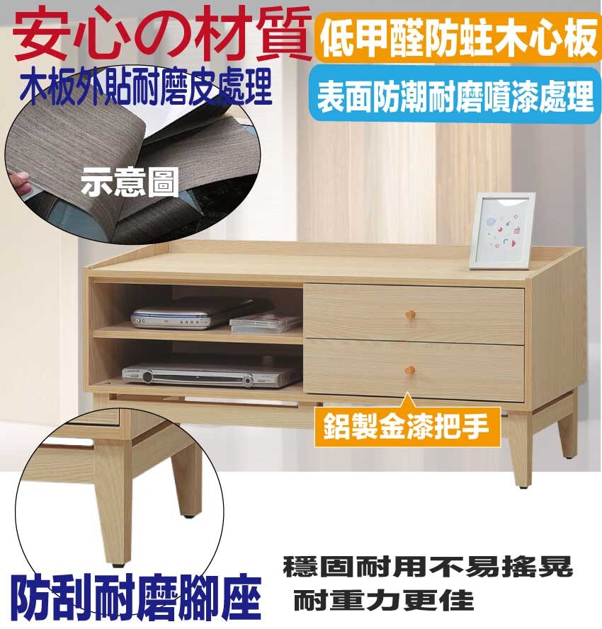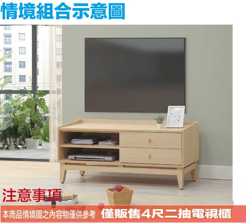 【綠家居】萬斯4尺二抽電視櫃 橡木紋色系+安心材質製造,使用放心+搭配居家更便利,採用防蛀木心板+防潮耐磨腳座+五金滑軌結構等安心材質製造 ,外層採用防潮耐磨噴漆處理搭配採用二抽屜+開放式層格等收納空間設計,全由專人配送到家,專業安心服務,替你省下更多時間!