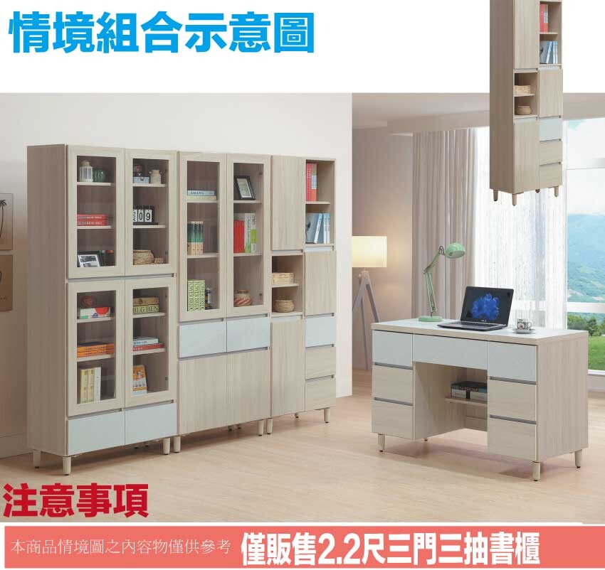 【綠家居】馬蘭雙色2.2尺三抽二門書櫃 淺橡雙色系+安心材質製造,使用放心+搭配居家更便利,採用防蛀木心板+防潮耐磨腳座+耐磨美耐皿板+五金滑軌結構+防夾手緩衝五金等安心材質製造 ,外層採用防潮耐磨噴漆處理搭配採用開門櫃+三抽屜+開放式層格等收納空間設計,全由專人配送到家,專業安心服務,替你省下更多時間!