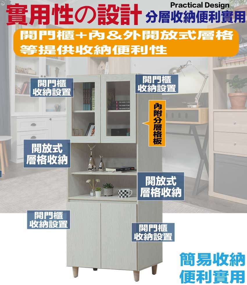 搭配採用開門櫃+內&外開放式層格等收納空間設計