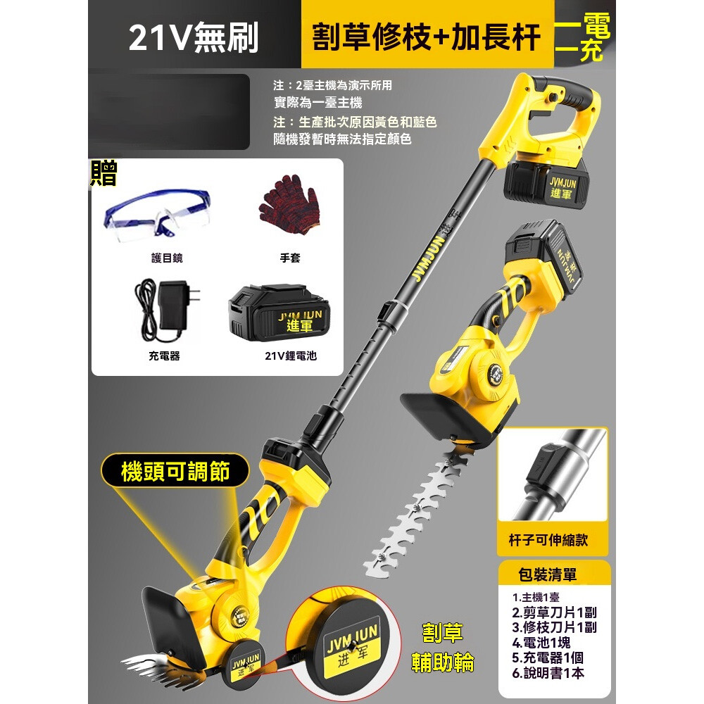 21V鋰電小型修剪機 一機兩用 剪草機 手持多功能綠籬機 鋤草機 草坪修剪機 割草機 打草機 加長桿