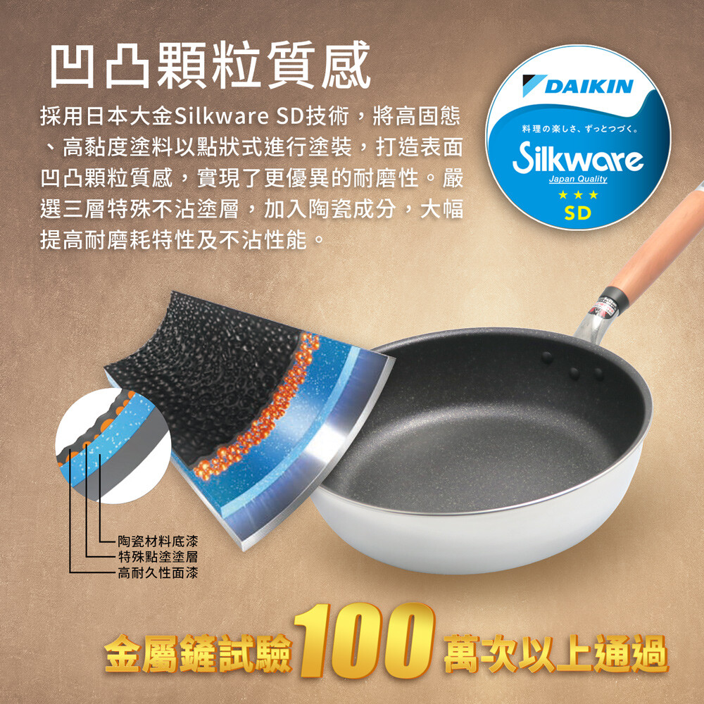日本大金塗層,凹凸顆粒質感,金屬鏟測試100萬次以上