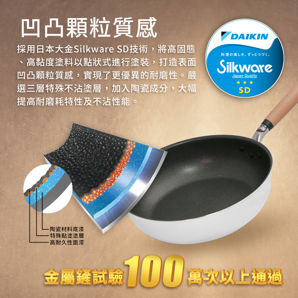 日本大金塗層,凹凸顆粒質感,金屬鏟測試100萬次以上
