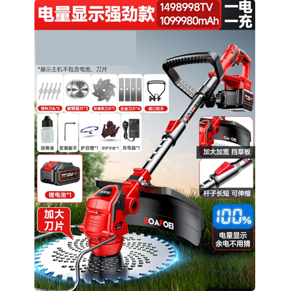 工業電顯割草機 小型家用除草機 充電式草坪修剪機 多功能打草機 桿子可伸縮 收割機 割谷機 清草機