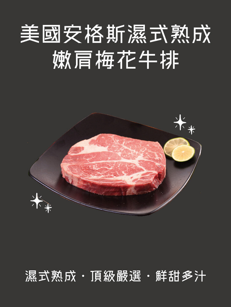 品名:美國安格斯濕式熟成嫩肩梅花牛排