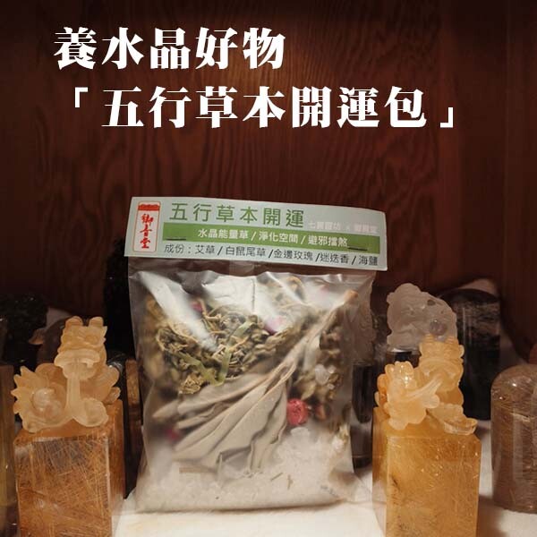 將「五行草本開運包」放置珠寶盒子內,每天穿戴後之水晶或寶石放置盒子裡或薰香淨化環境,亦可增加正能量。
