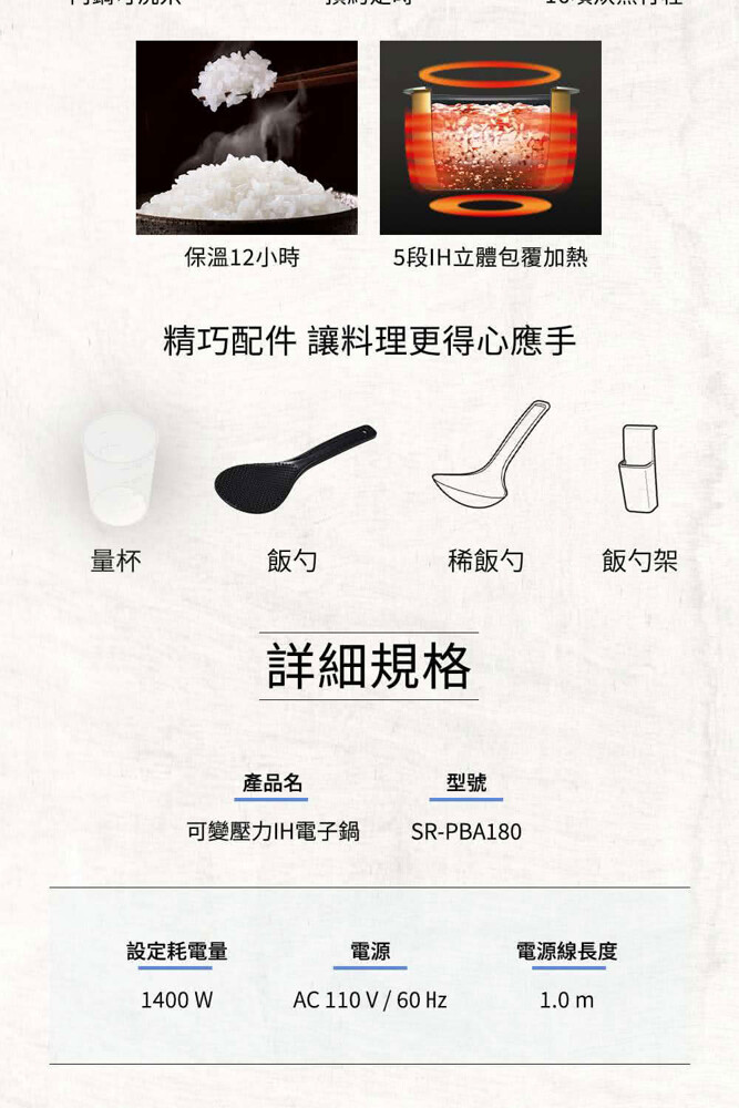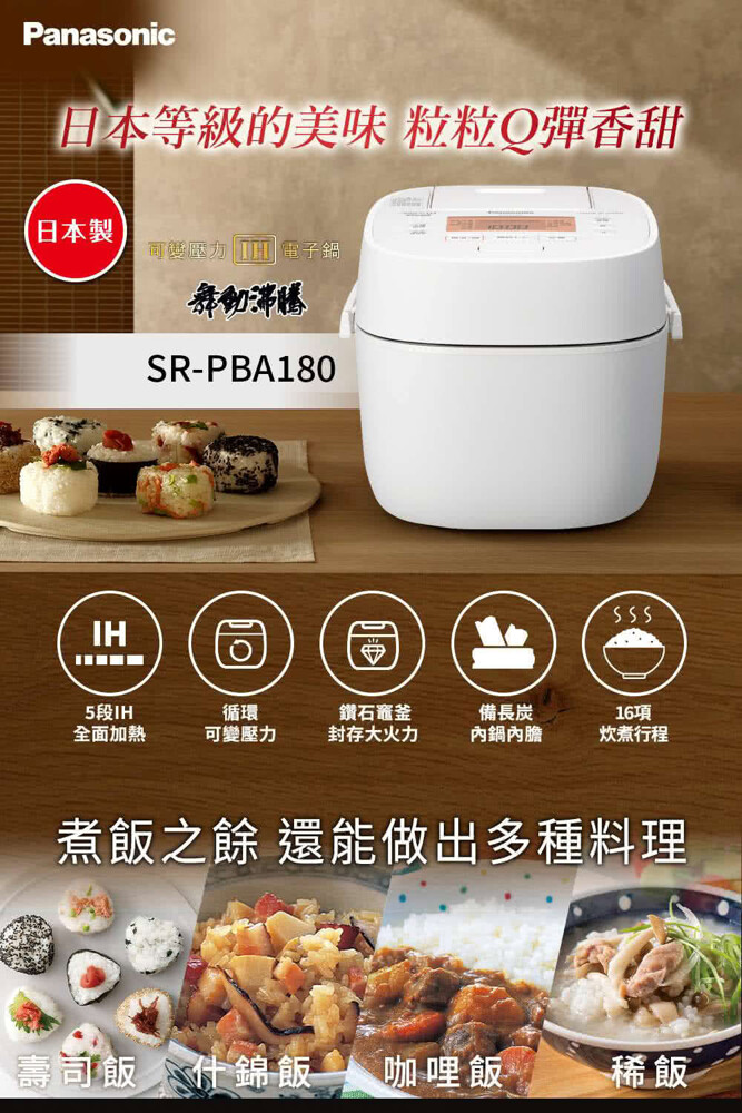 #公司貨 #國際牌 #Panasonic #SR-PBA100 #6人份 #可變壓力IH電子鍋 #全面加熱5段IH #日本等級美味米飯口感 #內鍋七層鑽石竈釜 #炊飯 #煮粥 #日本製