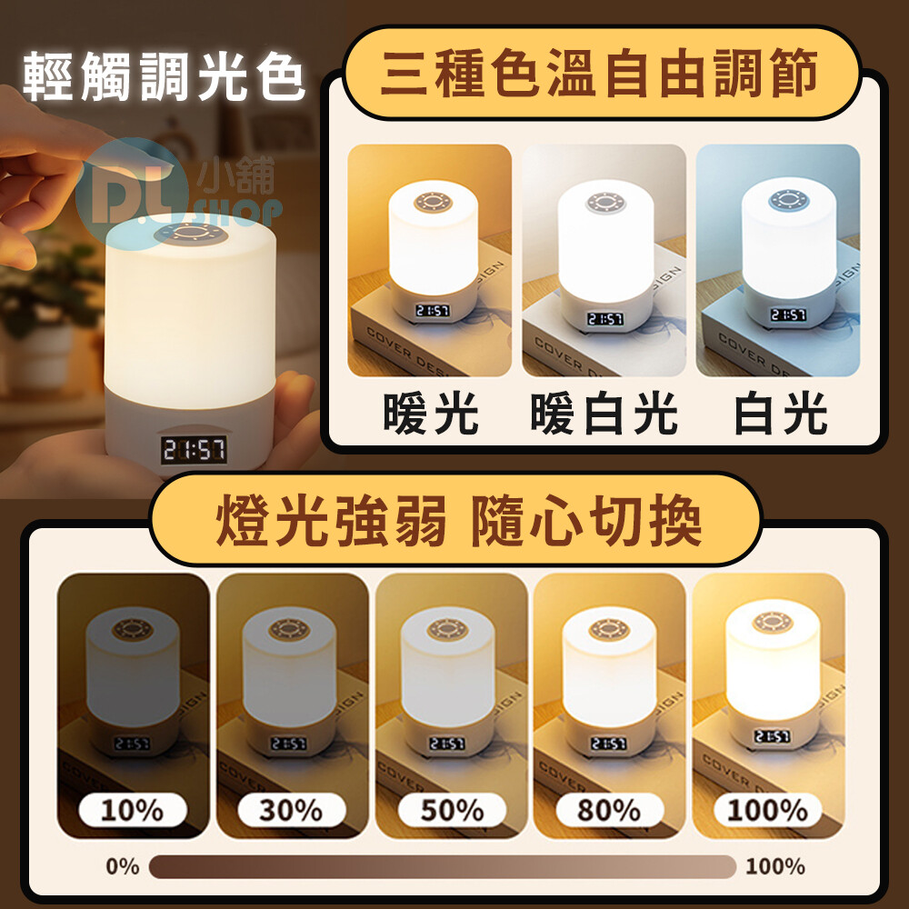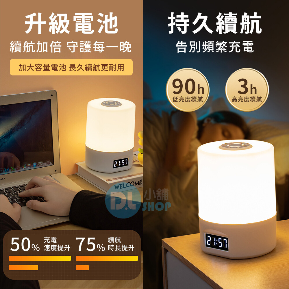 ✅持久續行、自由調亮、護眼燈光、三檔調色、時間顯示、過充防護。
