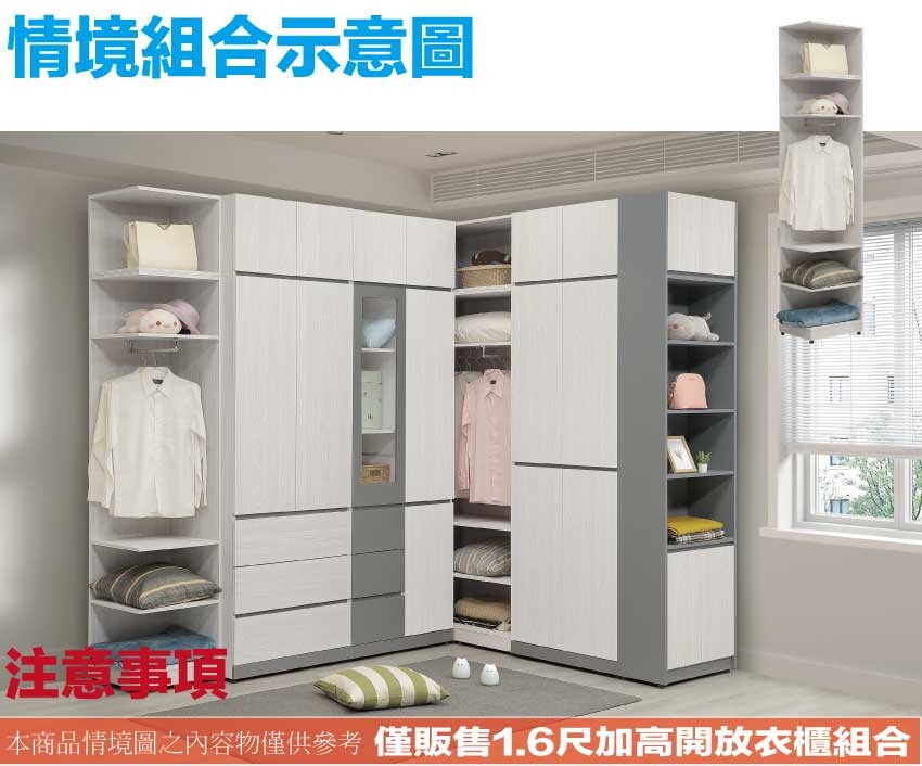 【綠家居】維斯1.6尺開放式加高側邊衣櫃組合 木紋雙色系+安心材質製造,使用放心+搭配居家更便利,採用防蛀木心板+防潮耐磨底座等安心材質製造 ,外層採用防潮耐磨噴漆處理搭配採用吊衣桿+內&外開放多層格等收納空間設計,全由專人配送到家,專業安心服務,替你省下更多時間!