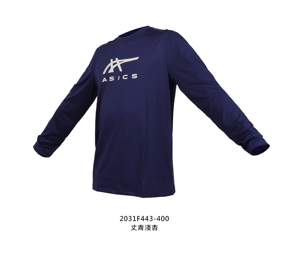 ASICS 男長袖T恤-台灣製 吸濕排汗 運動 反光 丈青淺杏