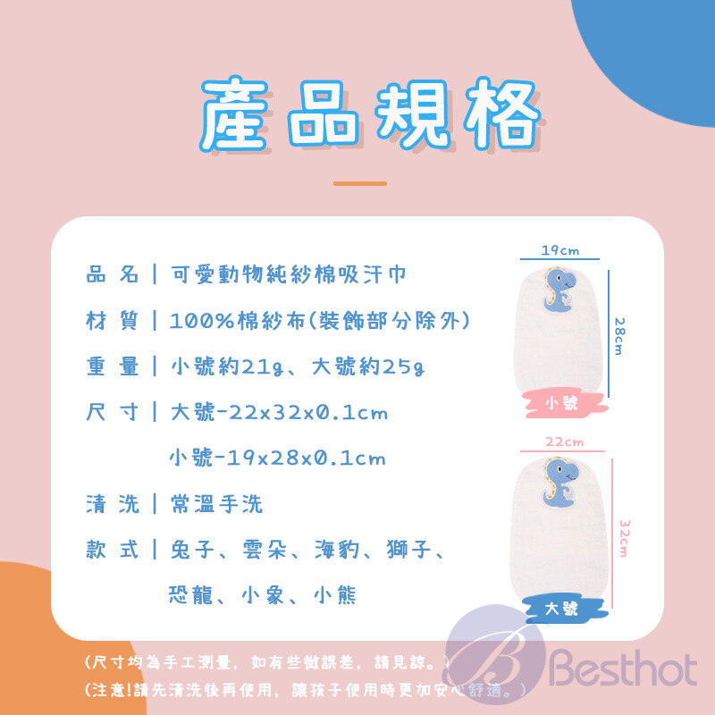 BESTHOT可愛動物純紗棉吸汗巾兩入組(小號)