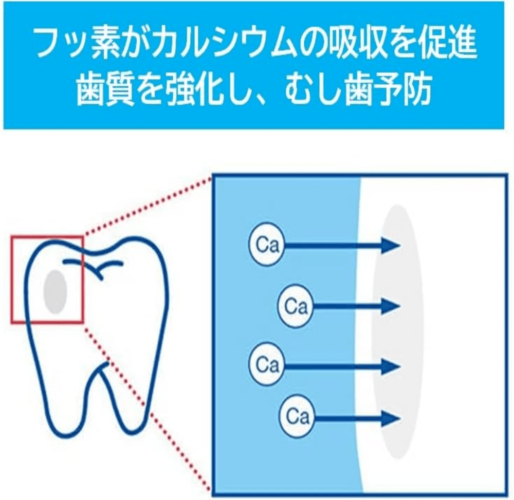 ●氟配方。 促進牙齒的鈣吸收,強化牙質,防止蛀牙。