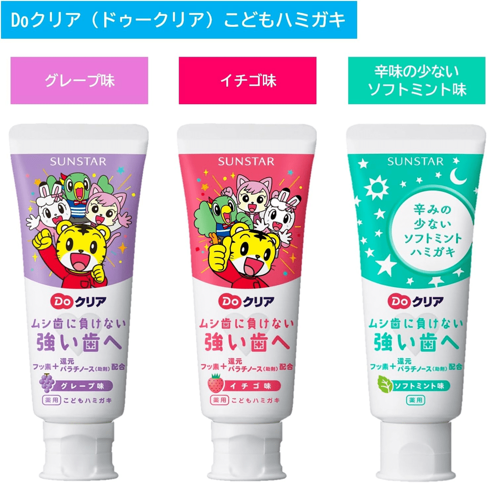 ●我們準備了讓孩子們喜歡・家長們使用的"草莓味・葡萄味",以及兒童用的明信片讓大人用的牙膏順利移行,辛苦的"軟薄荷味"。