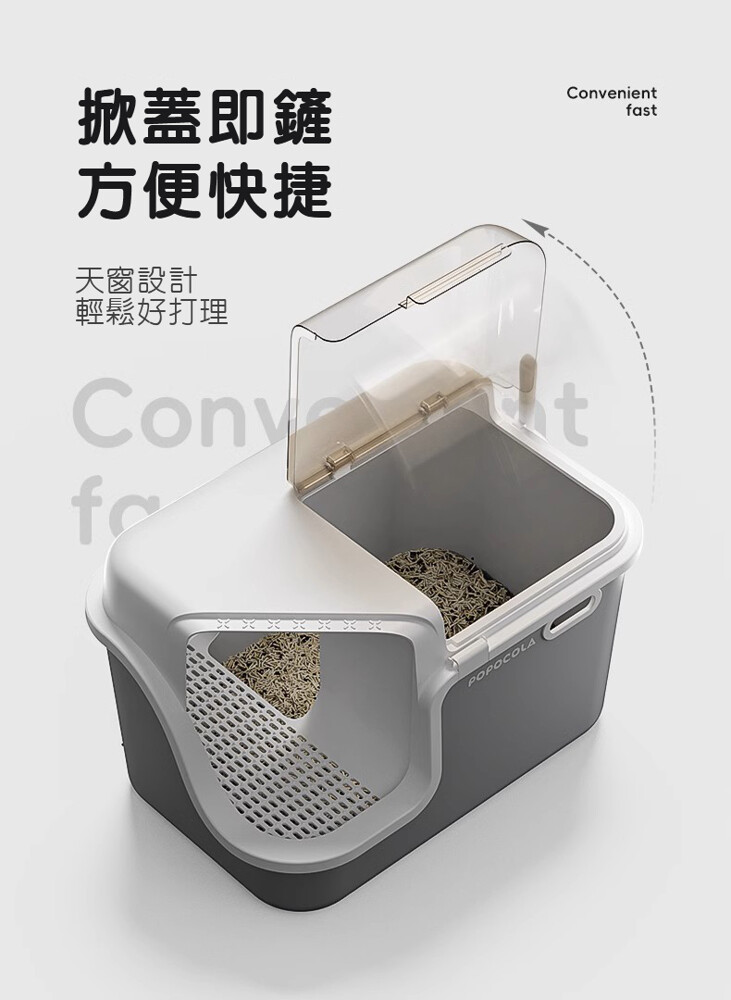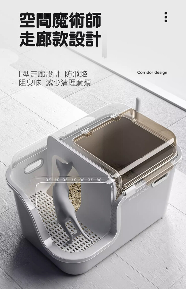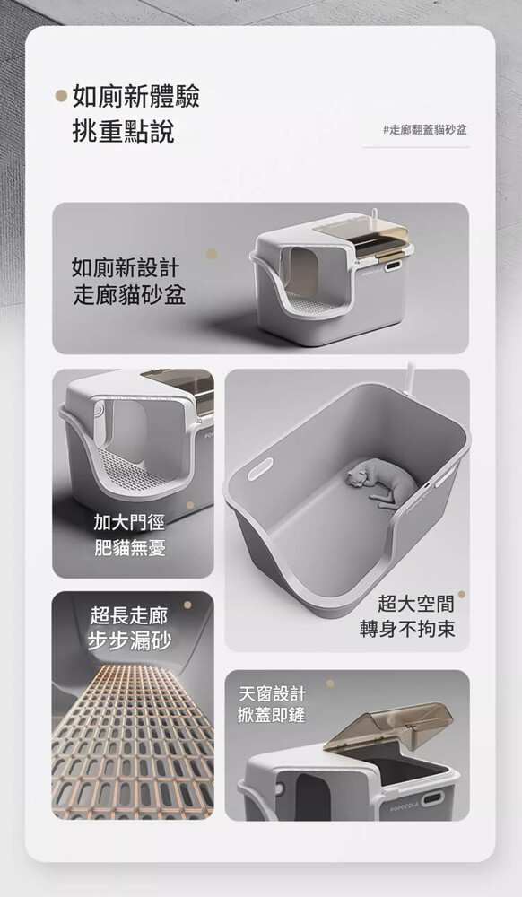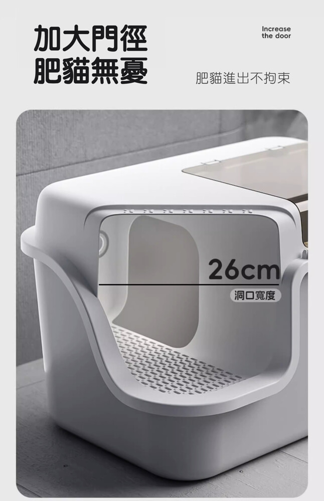 低入口設計:短腿貓、幼貓、老貓輕鬆進出,無壓力如廁體驗