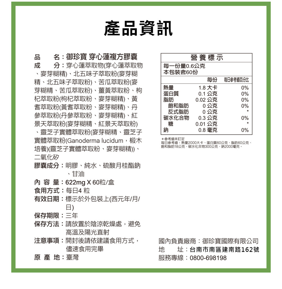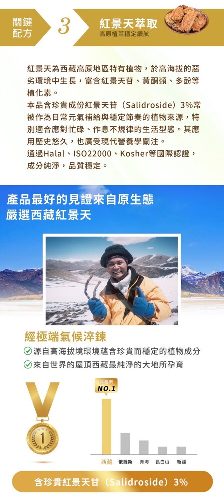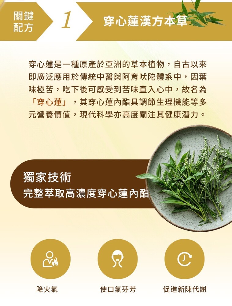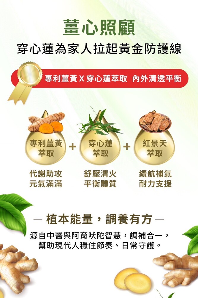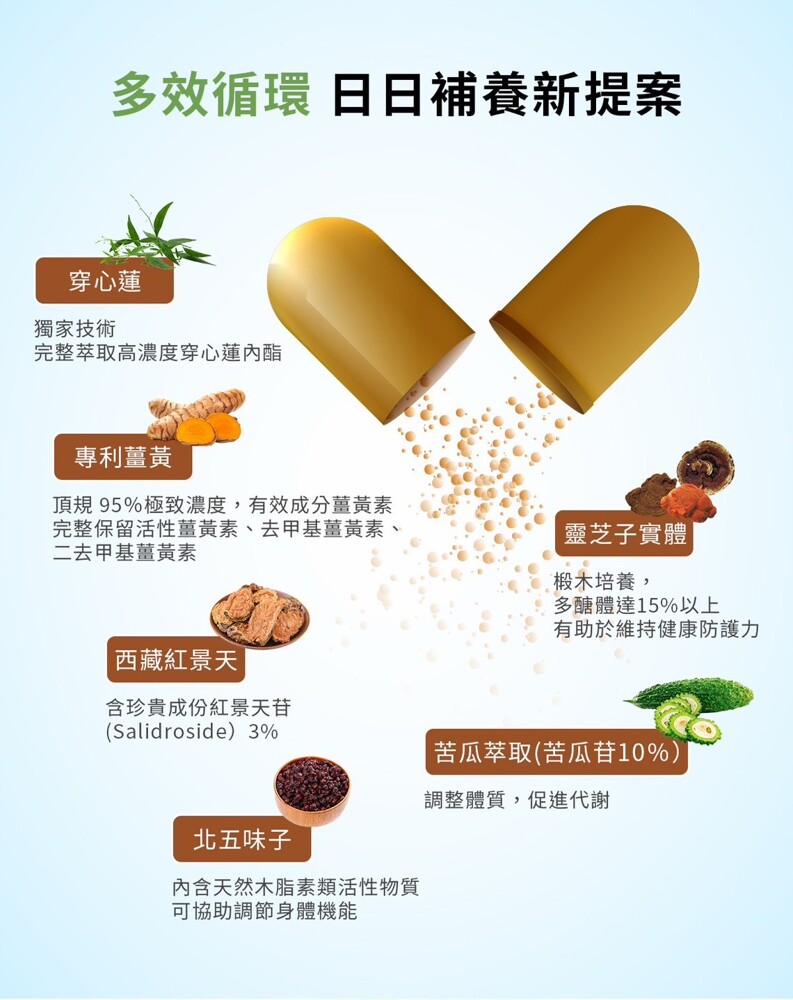 .嚴選獨家技術穿心蓮萃取、專利薑黃、靈芝子實體、西藏紅景天