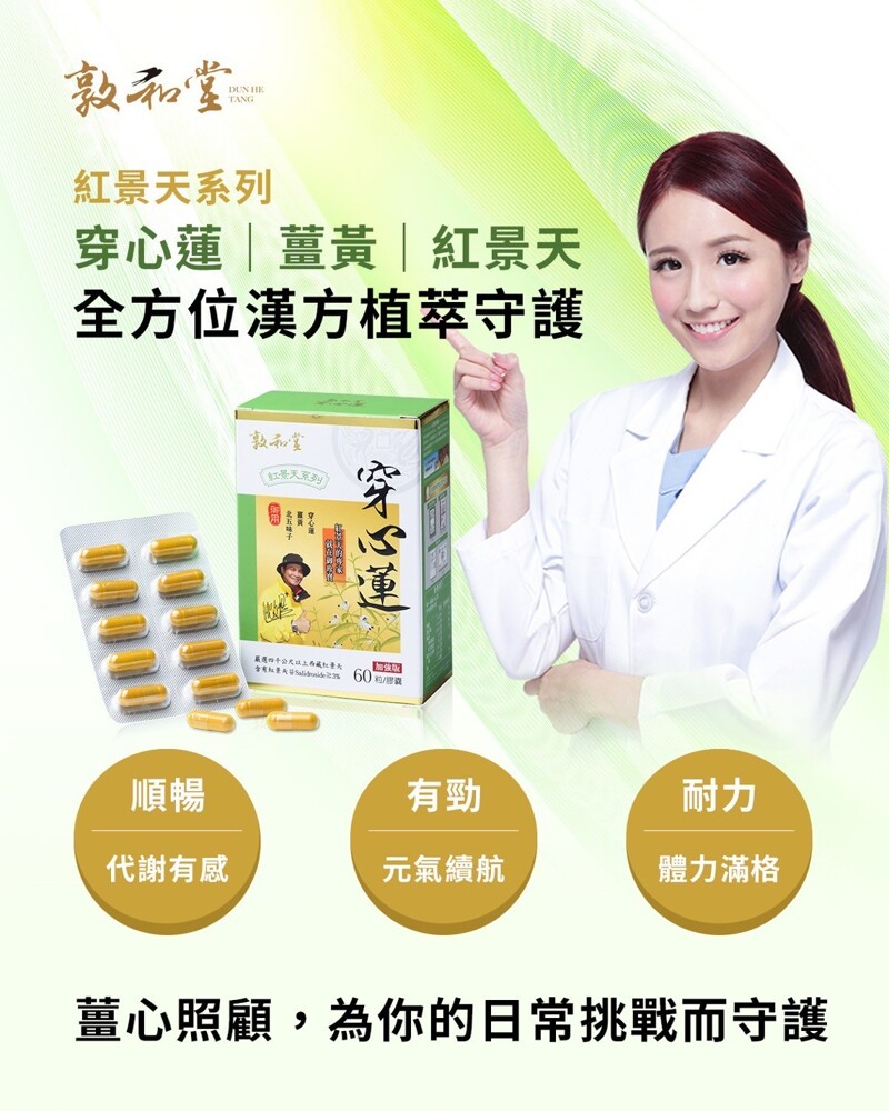 敦和堂 穿心蓮紅景天複方膠囊 60粒|草本平衡降火氣,現代人日常調理必備