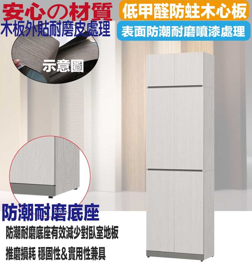 【綠家居】維斯2.5尺六門雙吊加高衣櫃組合 木紋雙色系+安心材質製造,使用放心+搭配居家更便利,採用防蛀木心板+防潮耐磨底座+防夾手緩衝門片五金等安心材質製造 ,外層採用防潮耐磨噴漆處理搭配採用開門櫃+吊衣桿+內開放多層格等收納空間設計,全由專人配送到家,專業安心服務,替你省下更多時間!