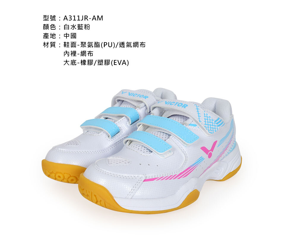 VICTOR 女兒童專業羽球鞋-訓練 運動 羽毛球鞋 勝利 白水藍粉