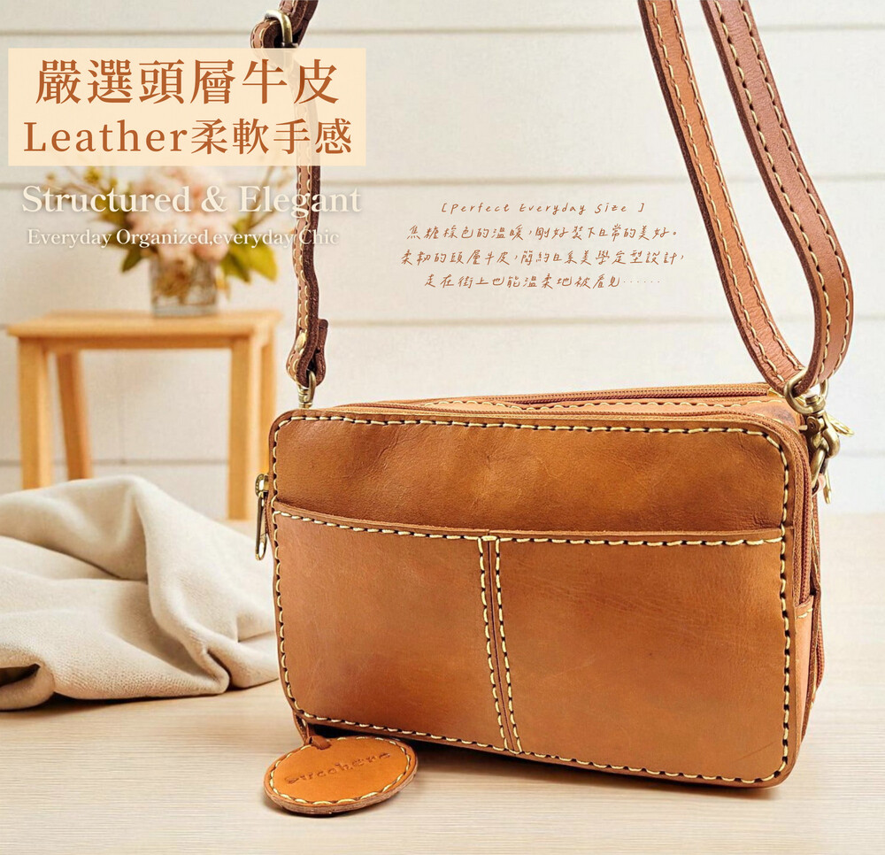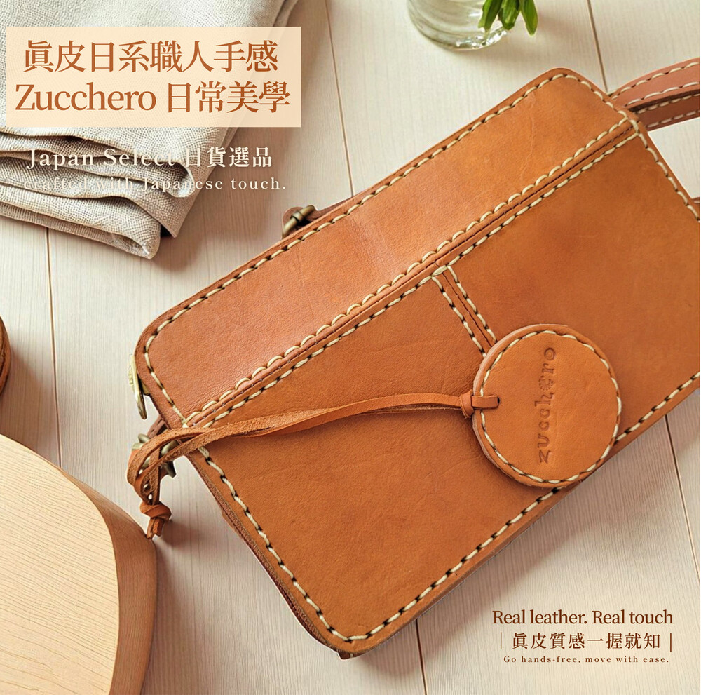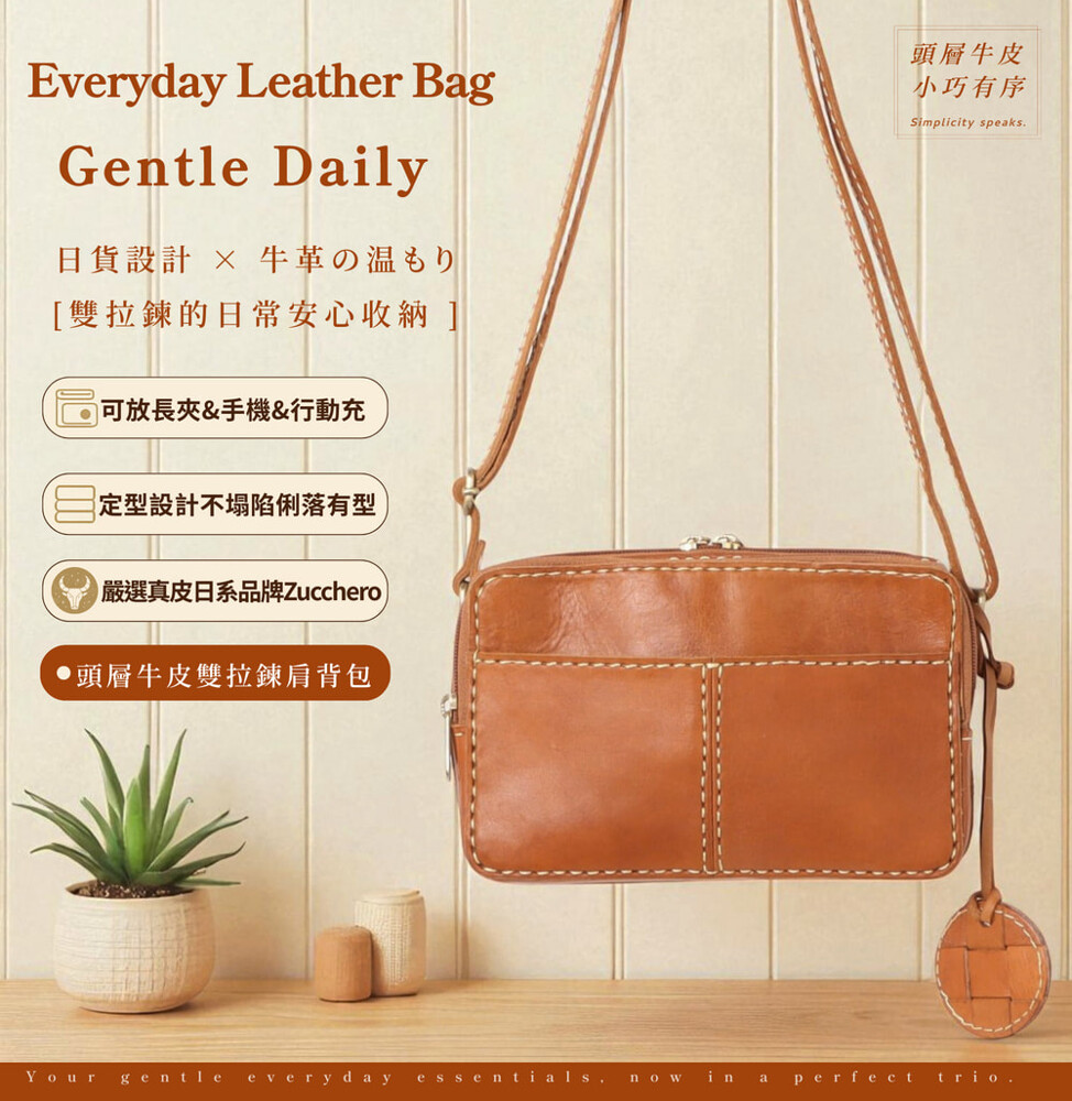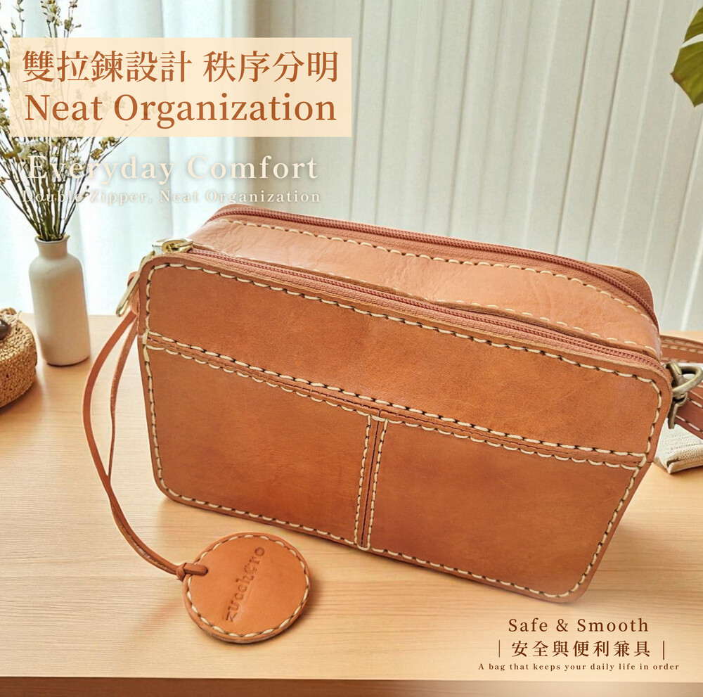 【喜番屋】日貨-真皮頭層牛皮女士雙拉鍊肩背包斜背包女包-Zucchero【LB1188】